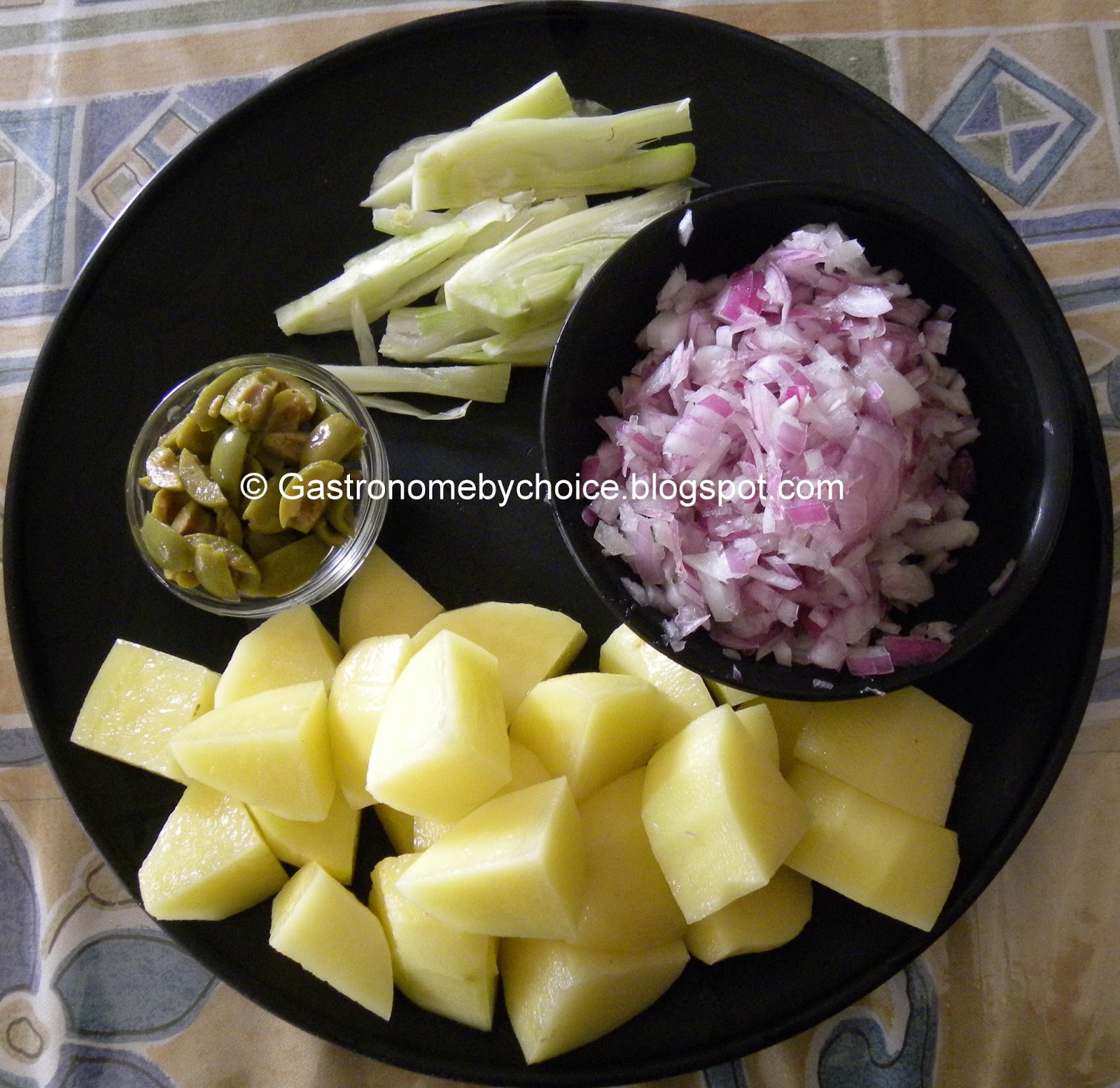 2. Mix all the salad ingredients in a bowl.