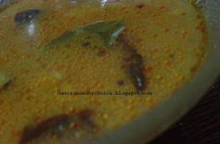 Having been married to an Iyer Brahmin,exposed me to a very different cuisine altogether. A cuisine which was simple and mild yet marrying so many flavors. After having seen my grand mother-in-law cook and after really pestering her for recipes (she still doesn't understand the presence of a male in the kitchen), I have now built up a nice collection of Iyer recipes for all ocassions.So what is a Vatral Kozhambu ? Vatral means dried vegetables and includes eggplant, gourd,onions, shallots etc. Kozhambu (Pronounced KoolAMbu) is a gravy/ stew dish from Tamil Nadu that is made without lentils in it.Typically it can have a tamarind base or a buttermilk base. Other variations too exist. Literally translated it means "Boiling Paste". I tried digging in deeper to find its origins but could not go far. Any other inputs are welcome.